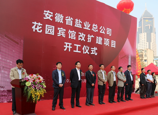 2014年10月18日上午,安徽省花園賓館改擴建項目在花園賓館舉行隆重的開工奠基儀式,參加儀式的嘉賓有:中共廬陽區委書記吳勁、副書記張家祥,廬陽區副區長李仲生、中建八局四公司董事長周可璋及相關協作單位、省鹽業總公司總經理詹先豪,副總經理王良貴、顏宗華、楊曉彬,省公司本部機關處室及直屬公司主要負責人。